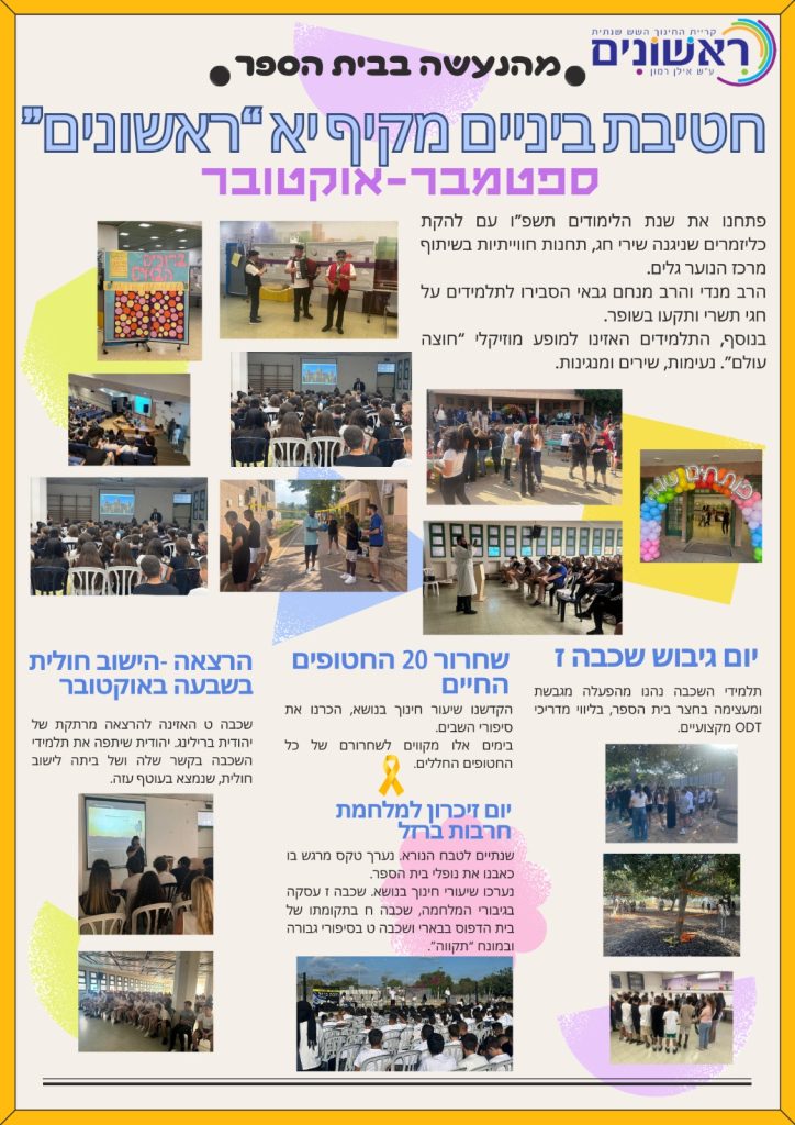 פתיחת השנה החלה במגוון פעילויות לתלמידים בחודשים ספטמבר – אוקטובר