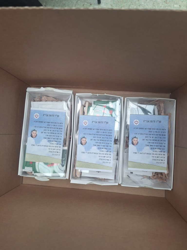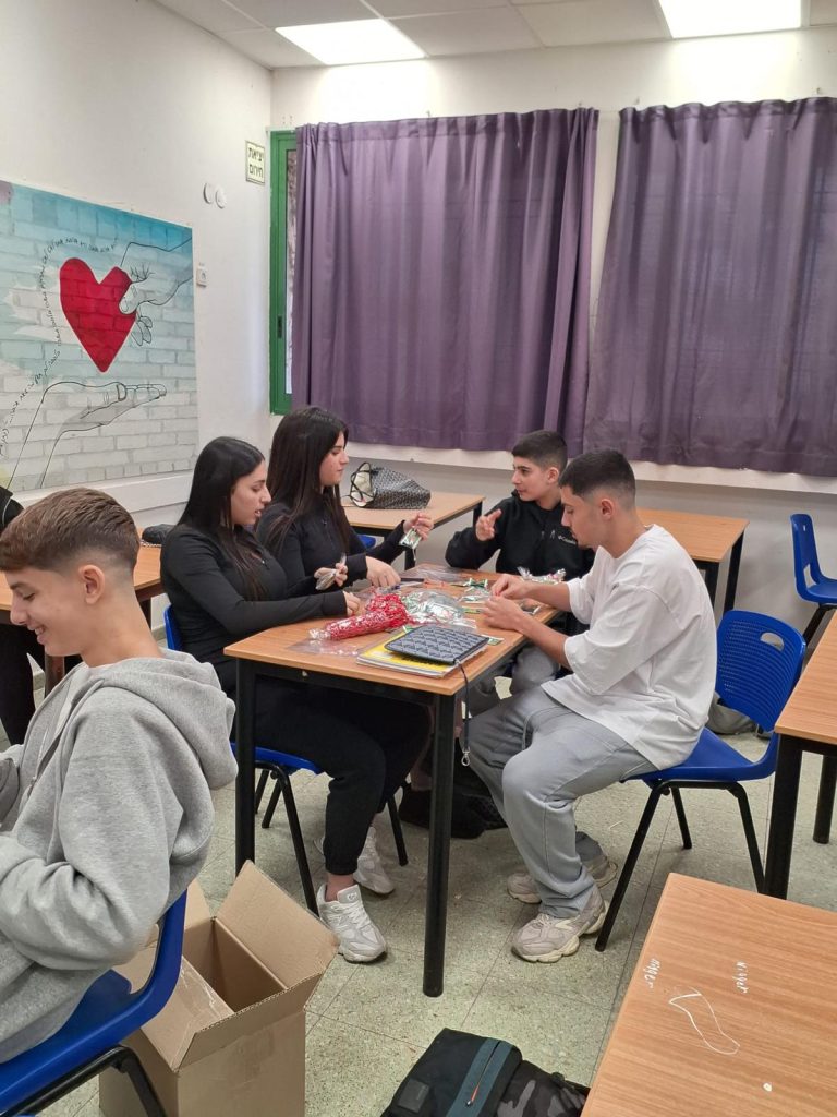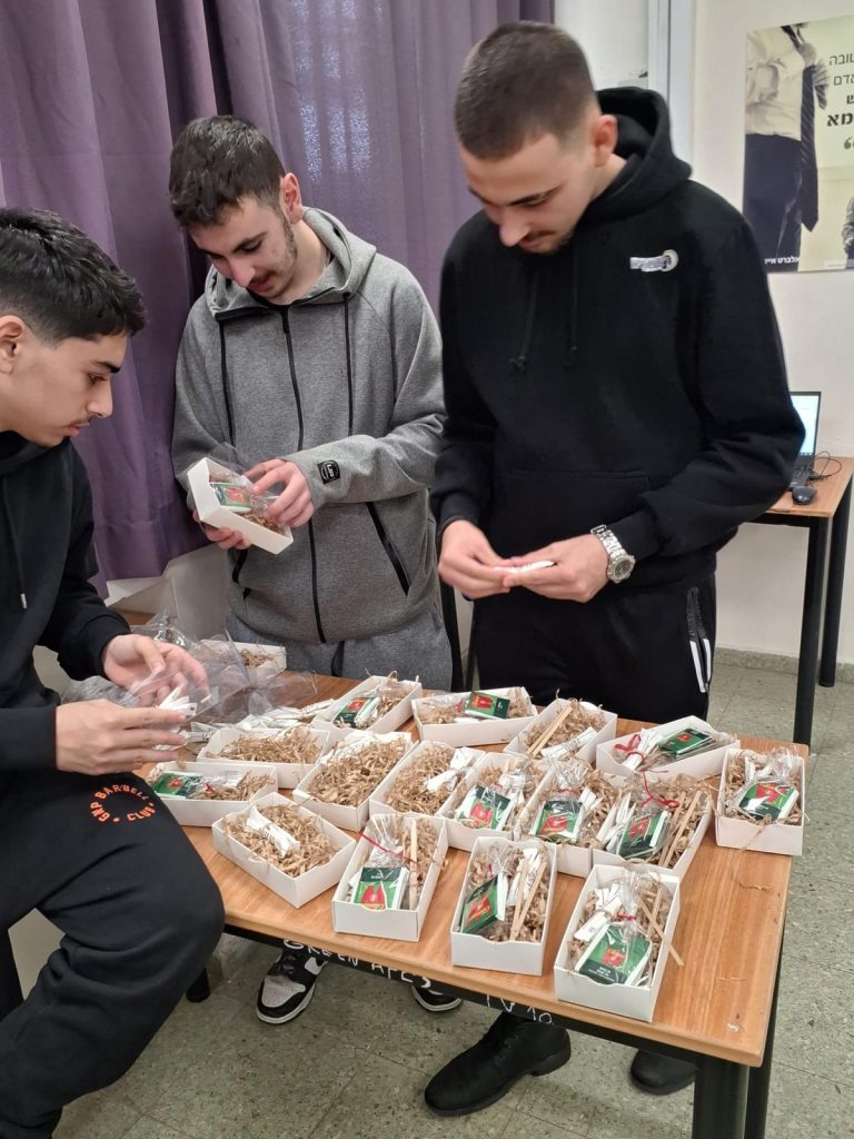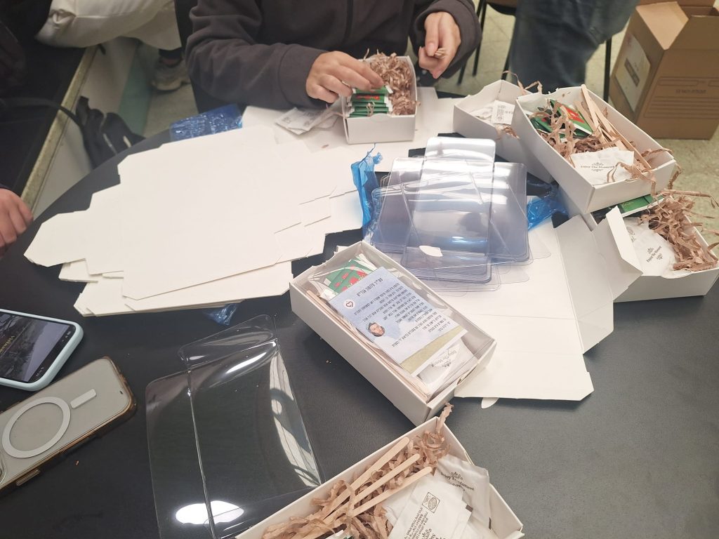 תלמידי כיתות ל"ב הכינו מארזים מפנקים לחיילים הפצועים בבתי החולים איכילוב ותל השומר.
